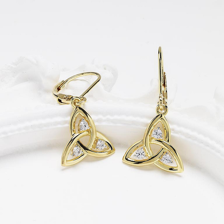 14kt Gold Vermeil Trinity Knot white Sapphire Drop Earrings