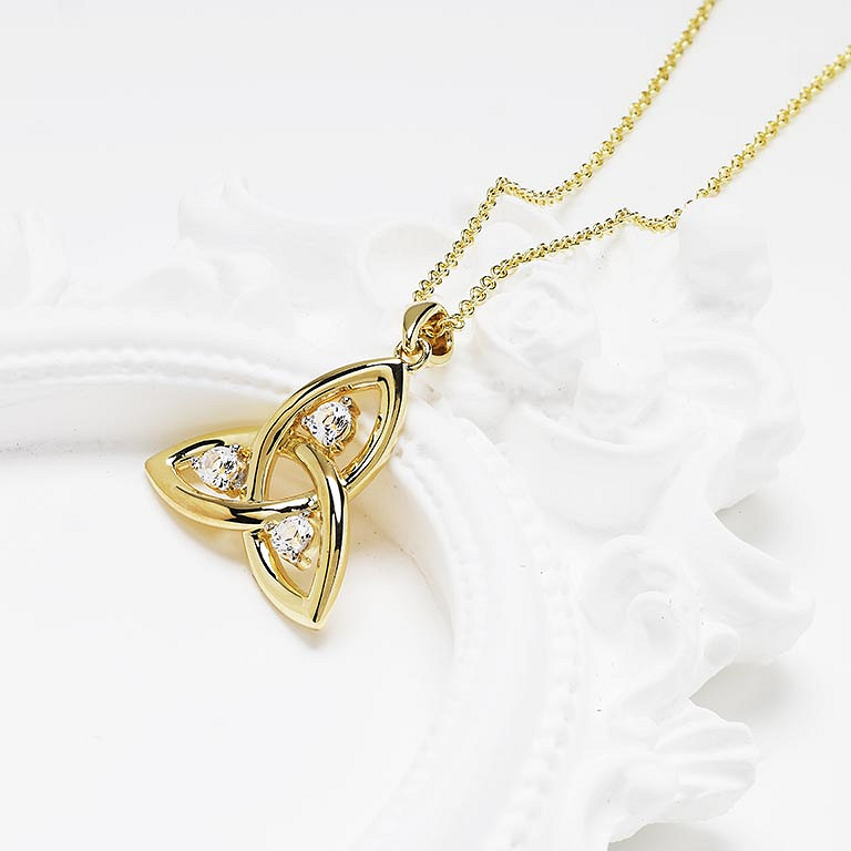 14kt Gold Vermeil Trinity Knot white Sapphire Necklace