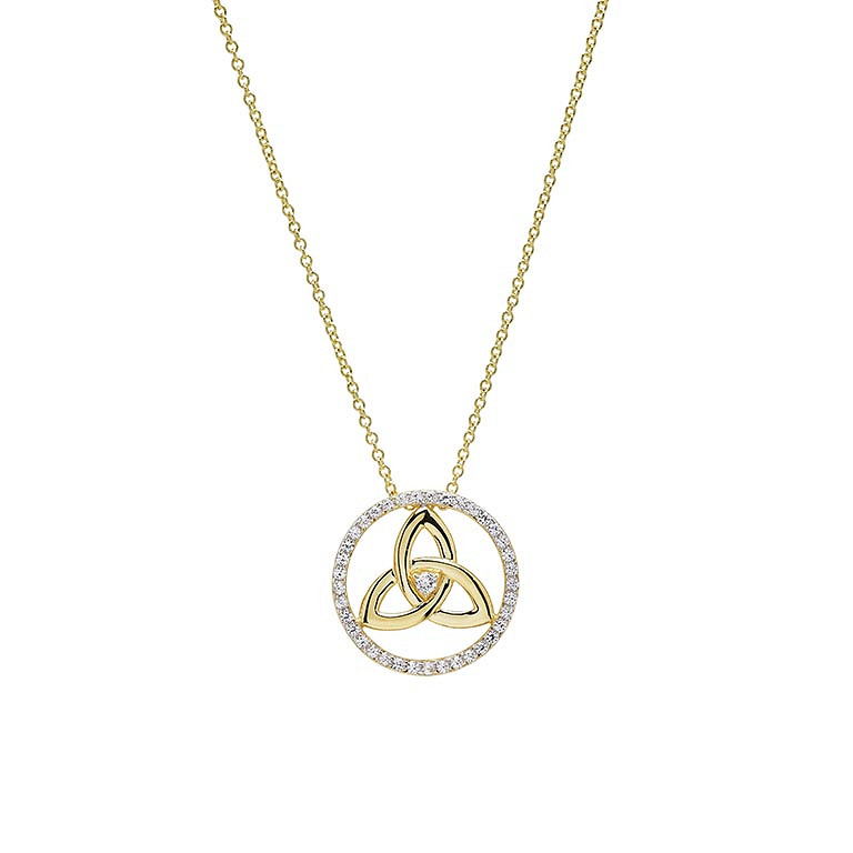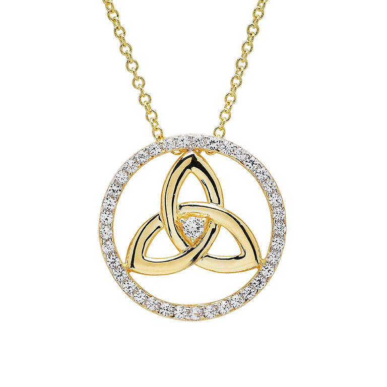 14kt Gold Vermeil Trinity Knot white Sapphire Necklace