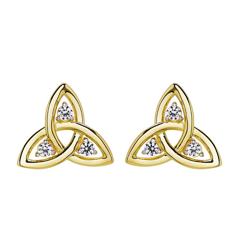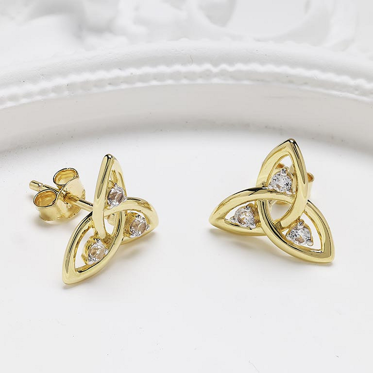 14kt Gold Vermeil Trinity Knot white Sapphire Stud Earrings