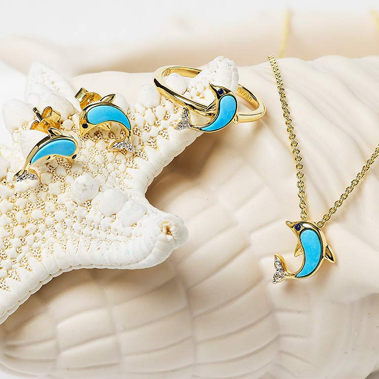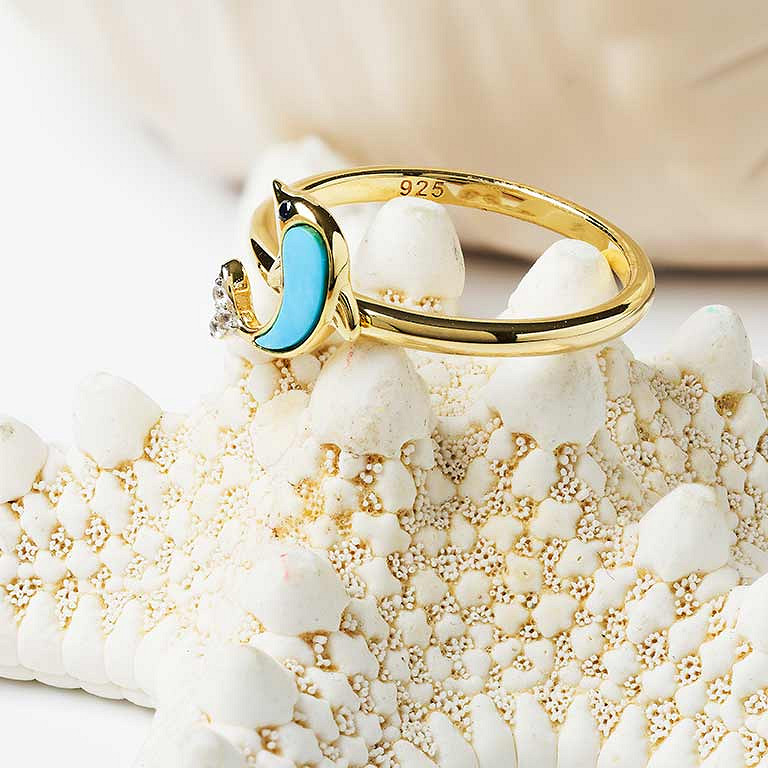 14kt Gold Vermeil Turquoise Dolphin Ring