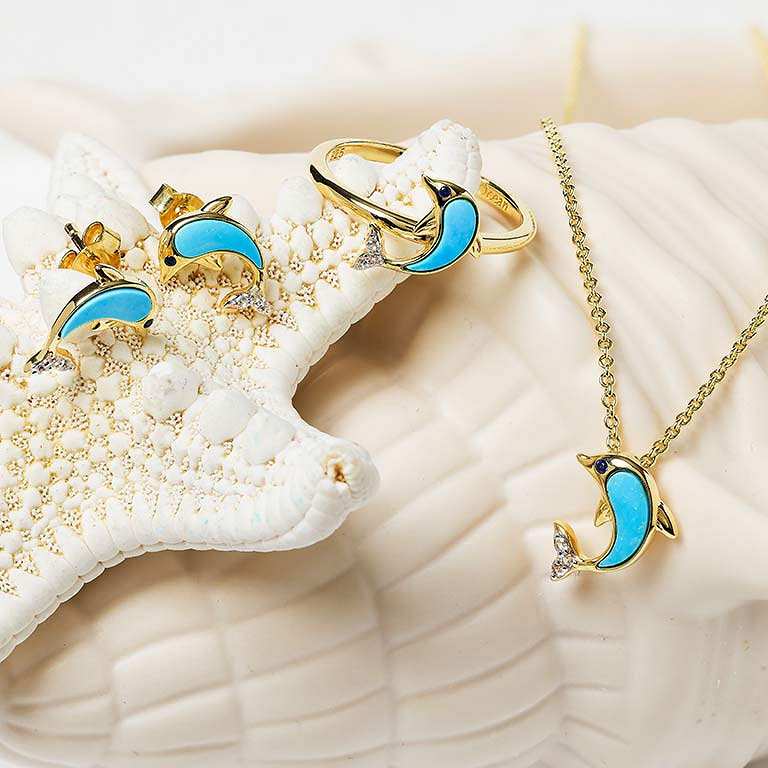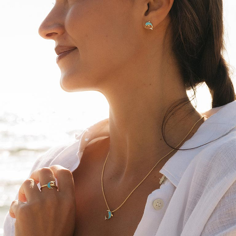 14kt Gold Vermeil Turquoise Dolphin Stud Earrings