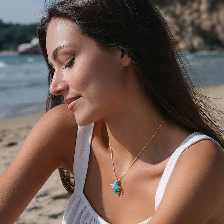 14kt Gold Vermeil Turquoise Sting Ray Necklace
