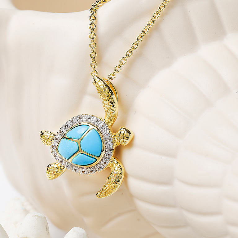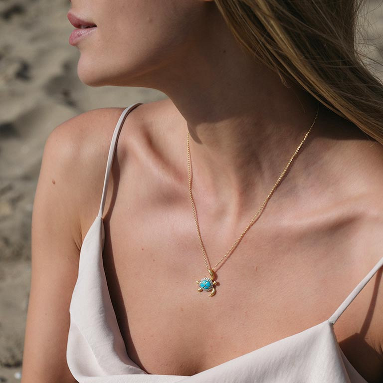 14kt Gold Vermeil Turquoise Turtle Necklace