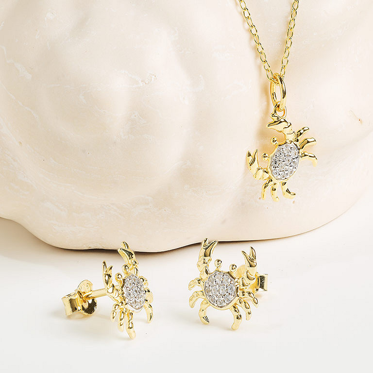 14kt Gold Vermeil white Sapphire Crab Earrings