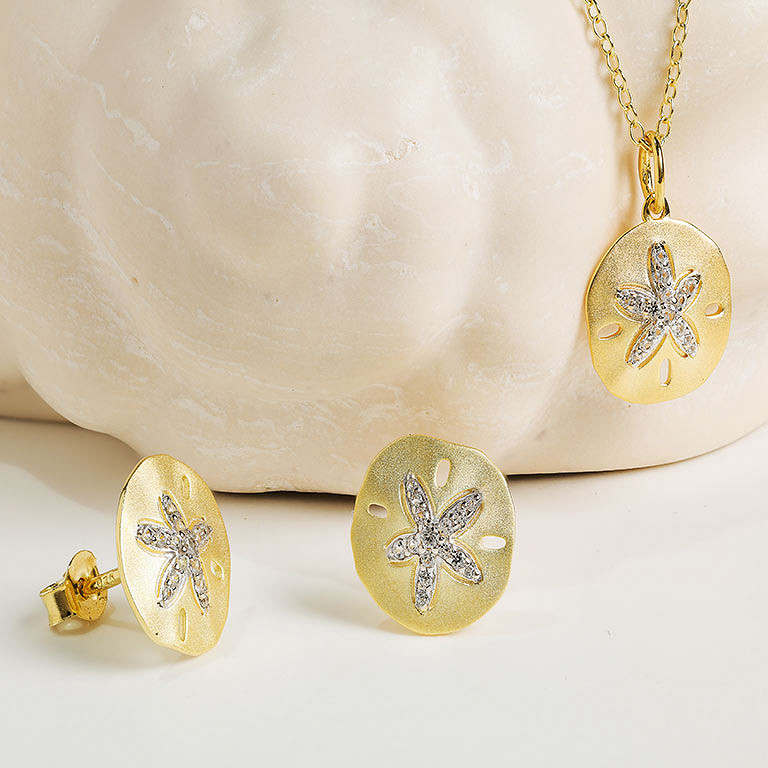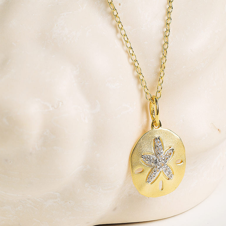 14kt Gold Vermeil white Sapphire sand dollar Necklace