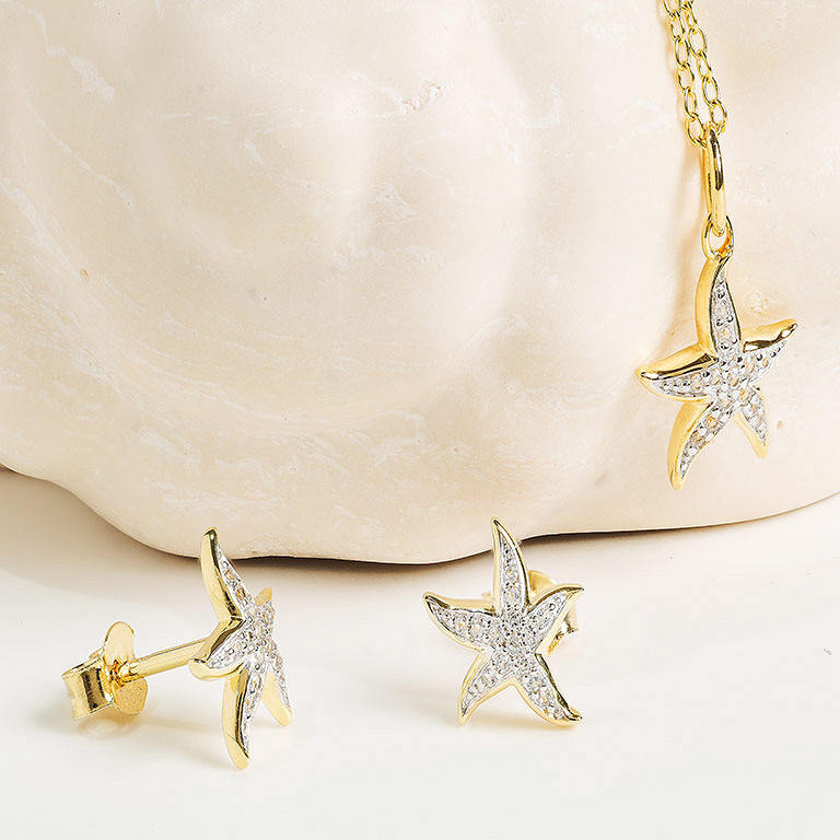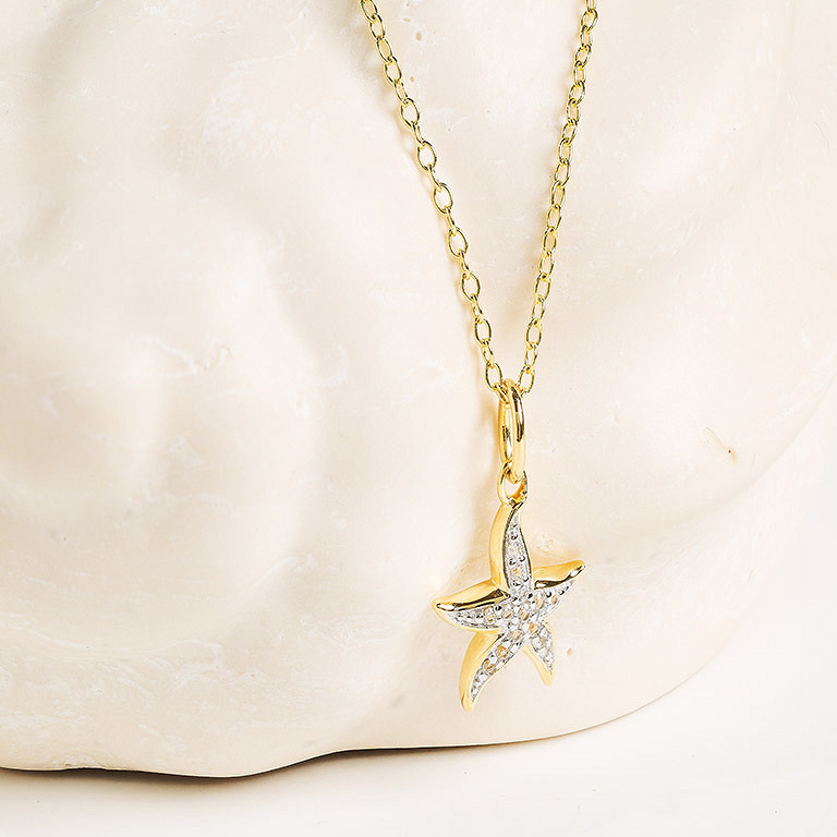 14kt Gold Vermeil white Sapphire Star Fish Necklace