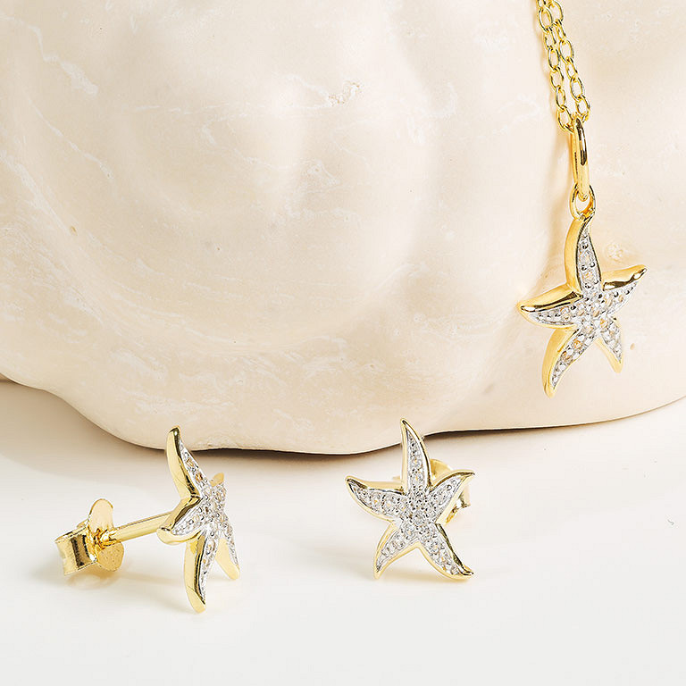 14kt Gold Vermeil white Sapphire Starfish Earrings