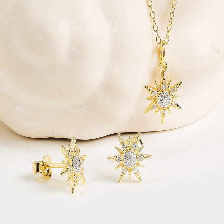 14kt Gold Vermeil white Sapphire Sun Earrings