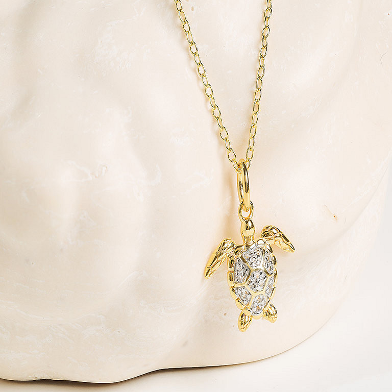 14kt Gold Vermeil white Sapphire Turtle Necklace