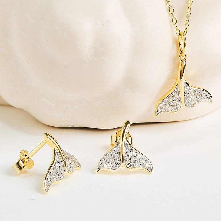 14kt Gold Vermeil white Sapphire whale tail necklace