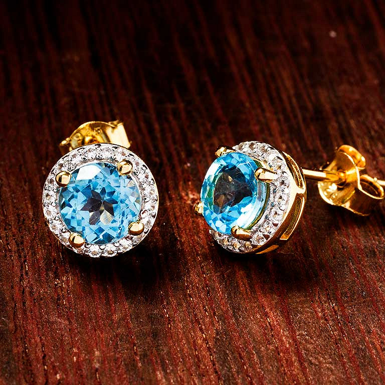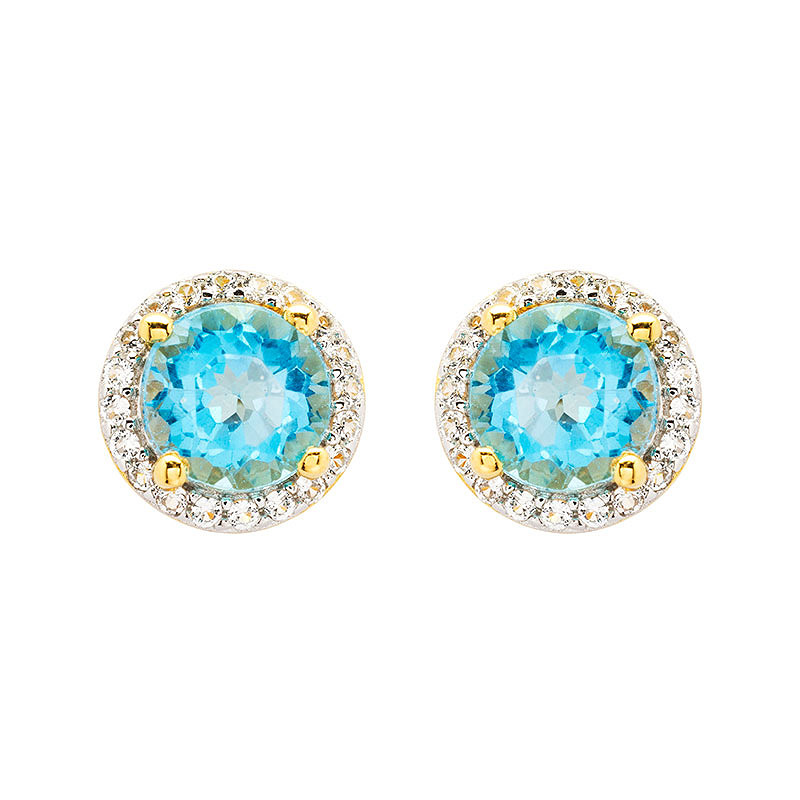 14kt Gold Vermeil Genuine Blue Topaz Halo Earrings