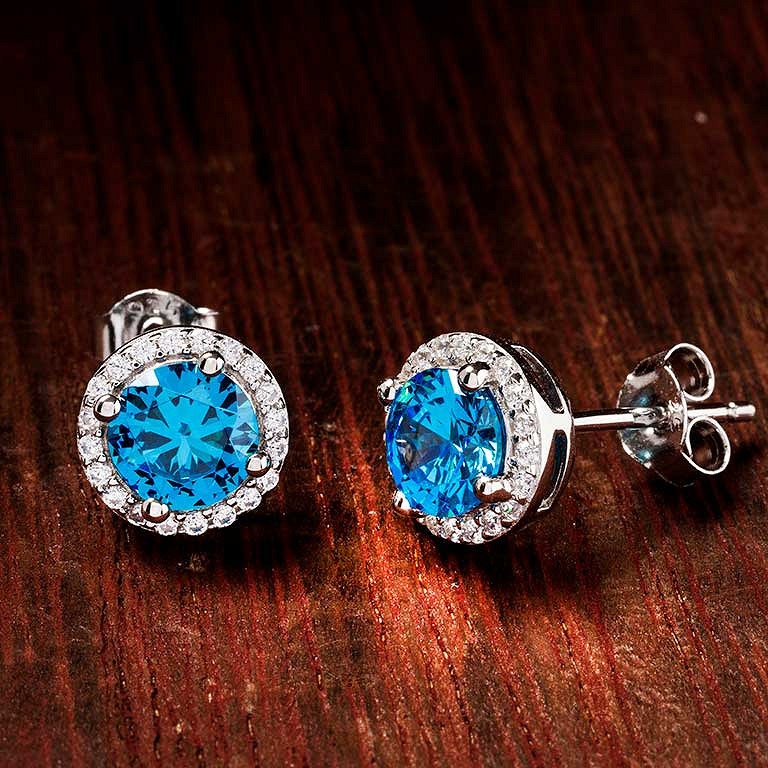 Sterling Silver Aquamarine CZ Halo Earrings