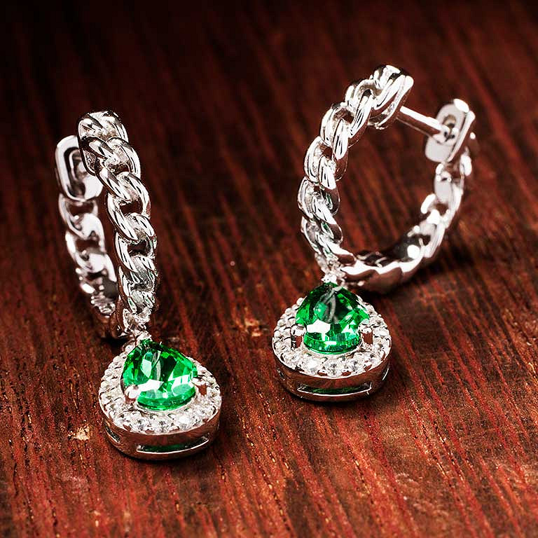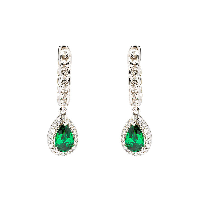 Sterling Silver Emerald CZ Halo Drop Earrings