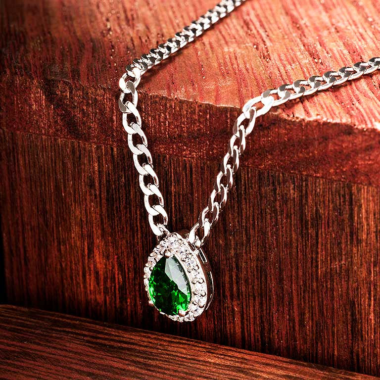 Sterling Silver Emerald CZ Halo Necklace