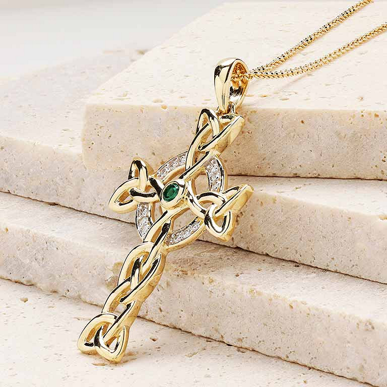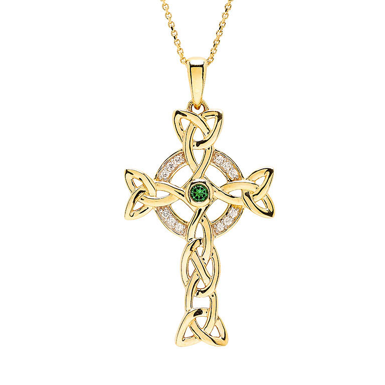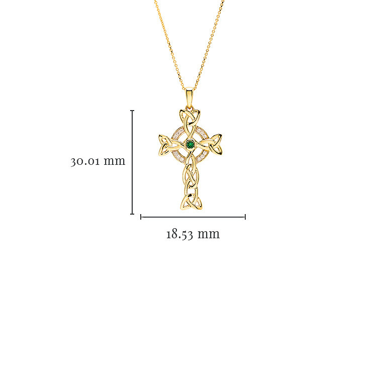 14k Gold Lab Diamond and Emerald Celtic Cross .06ct