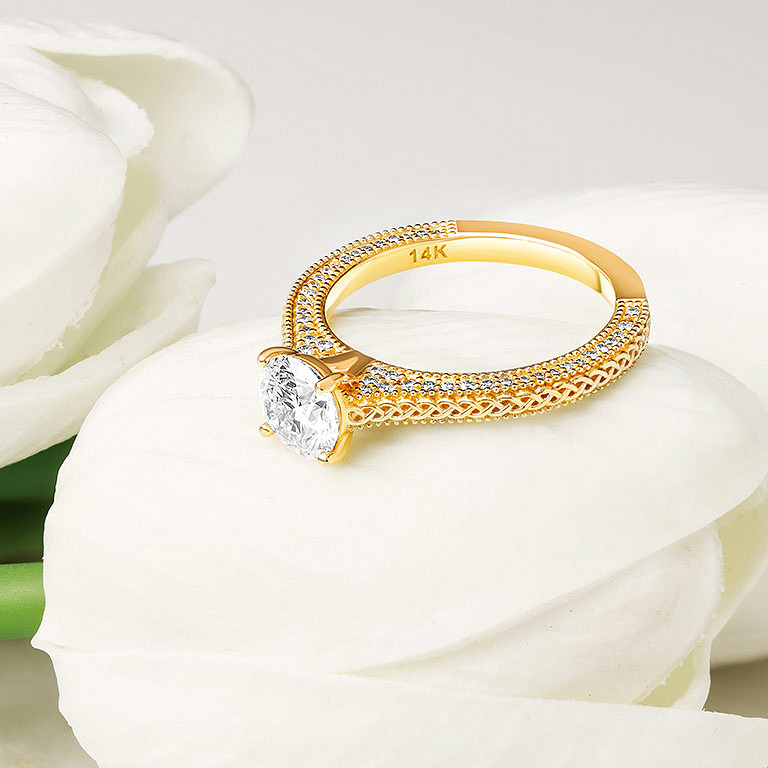 14k Yellow Gold Celtic Ring with 2ct Lab Diamond