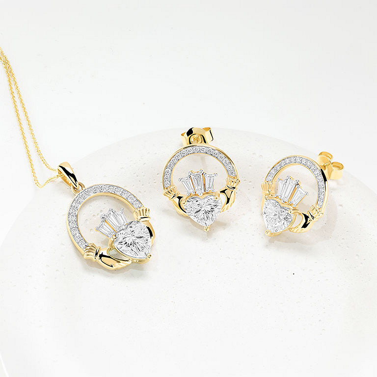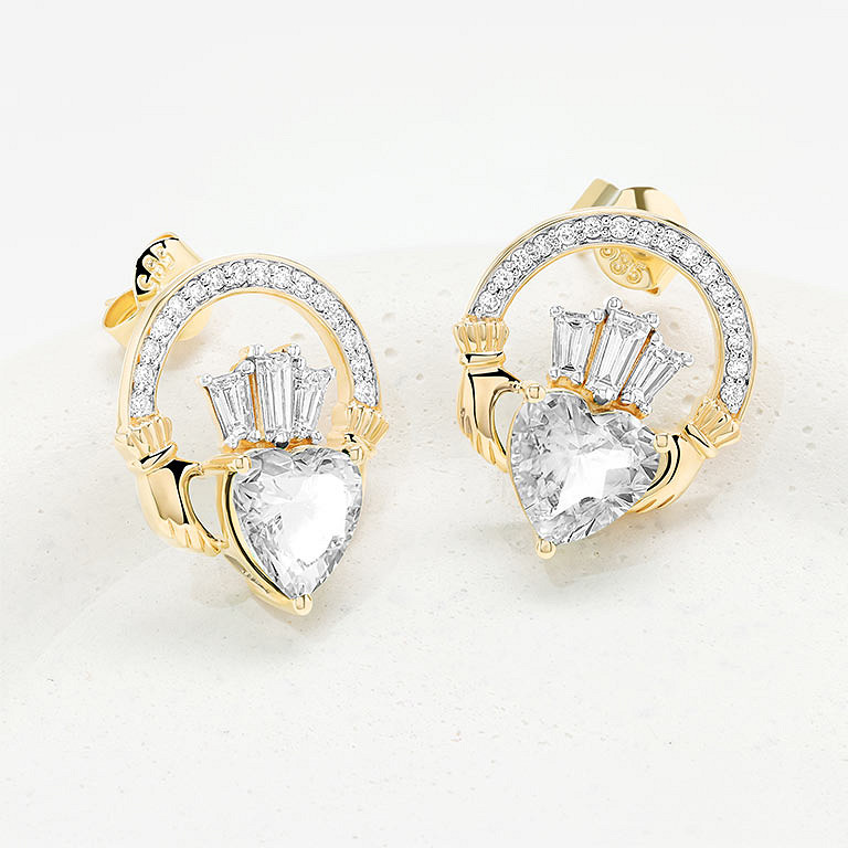 14kt Gold Lab Diamond Claddagh Earrings