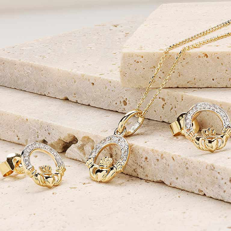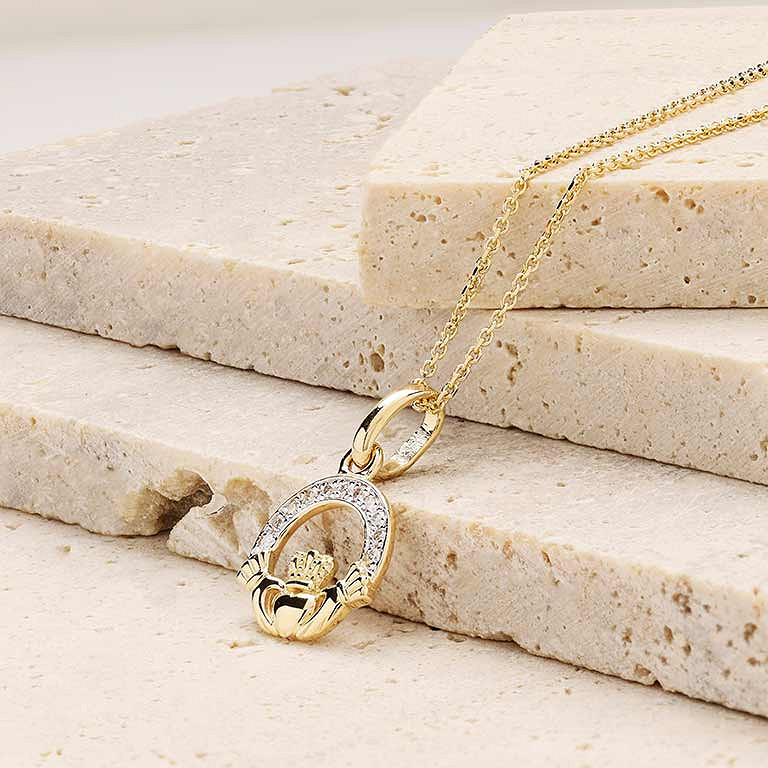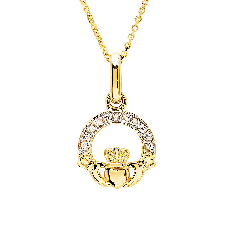 14kt Gold Lab Diamond Claddagh Necklace .05ct
