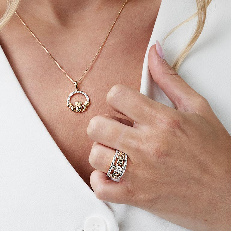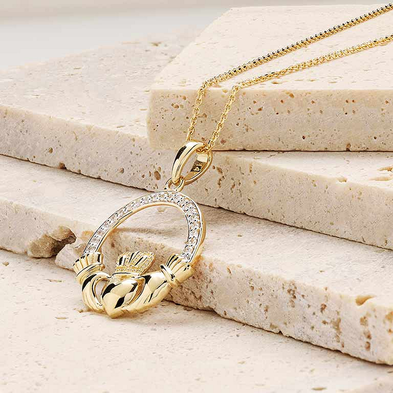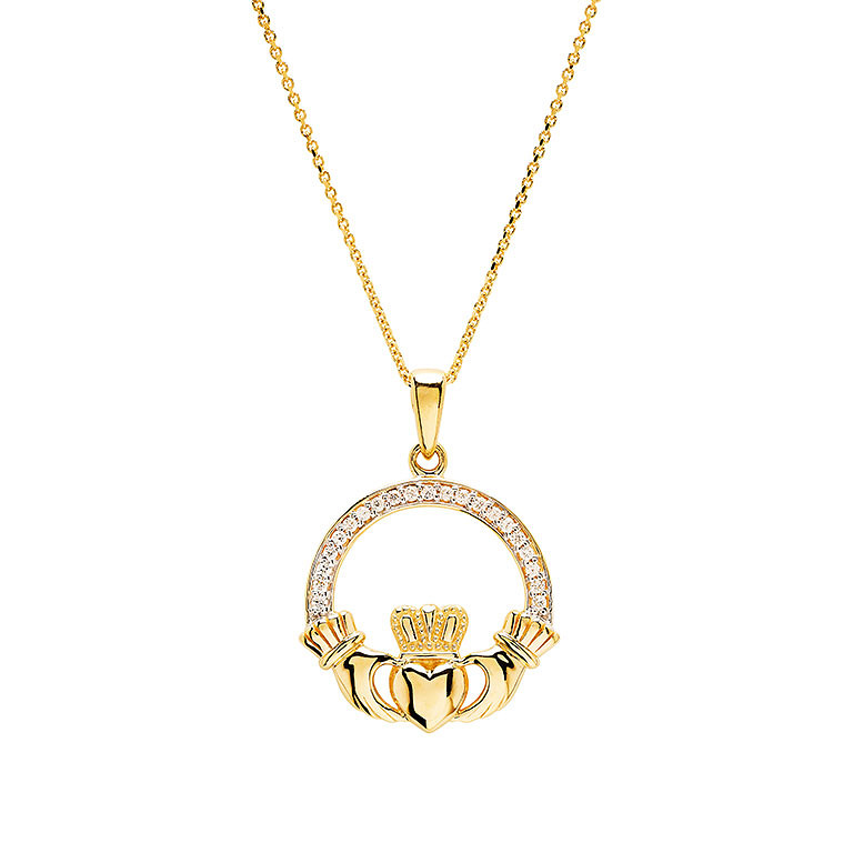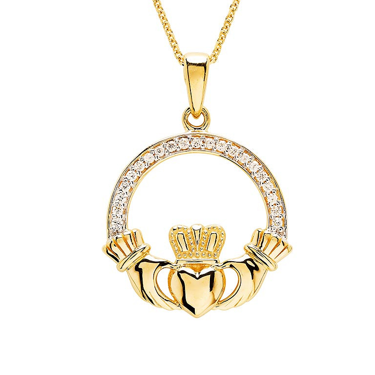 14kt Gold Lab Diamond Claddagh Necklace .10ct