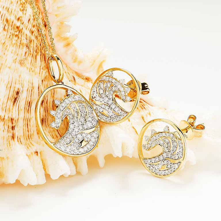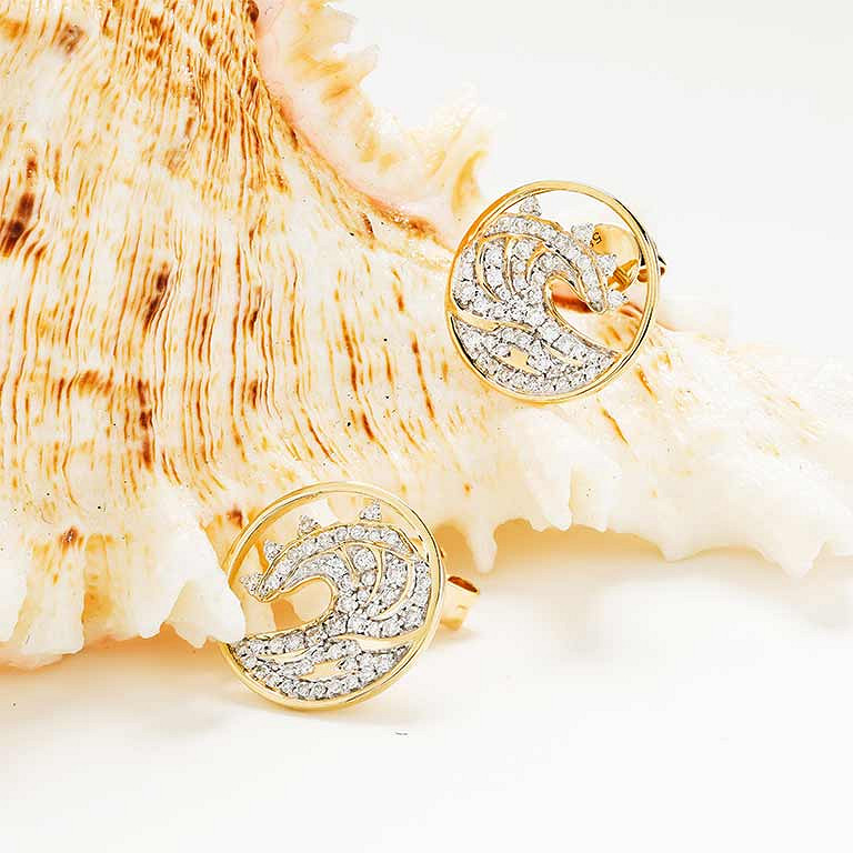 14kt Gold Lab Diamond set Wave Earrings