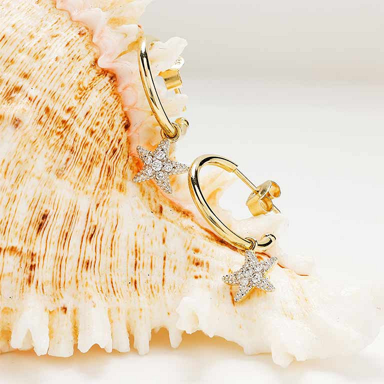 14kt Gold Lab Diamond Star Fish Earrings