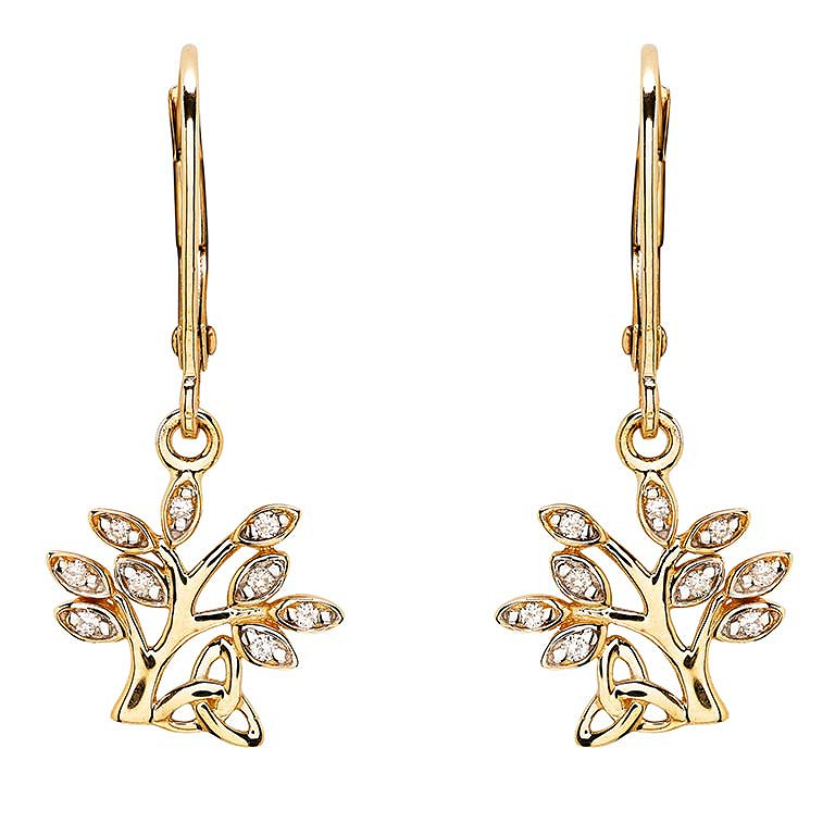 14kt Gold Lab Diamond Tree of Life Earrings .10ct