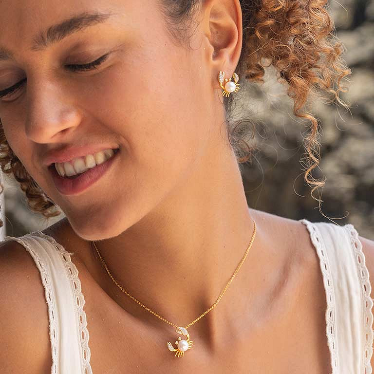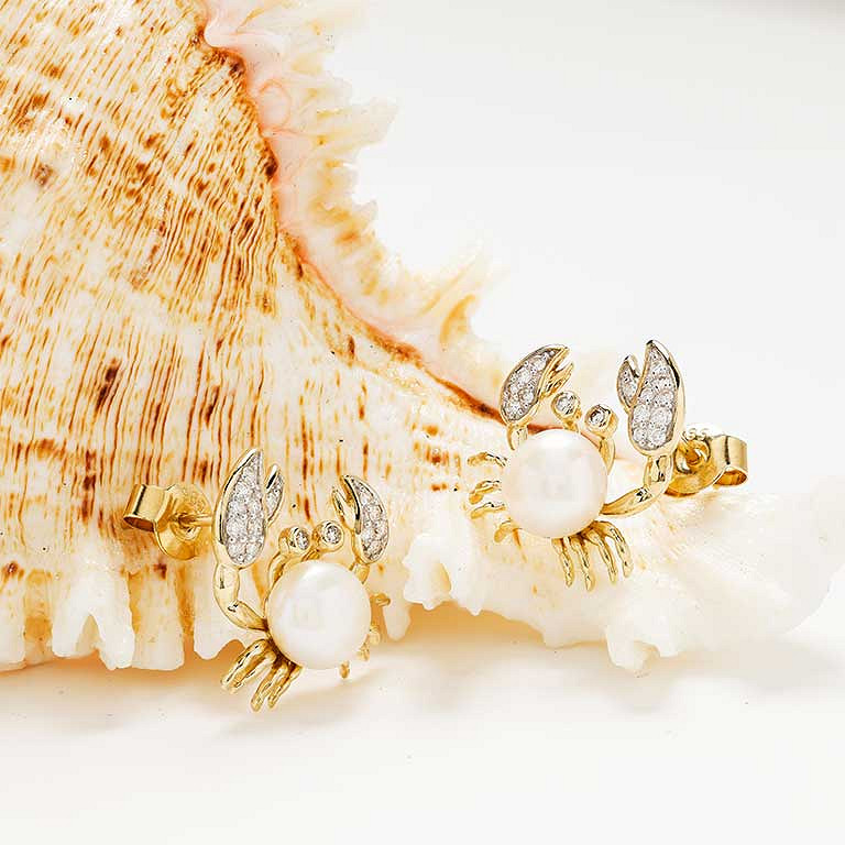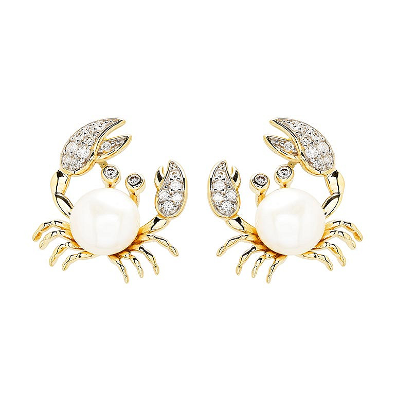14kt Gold Lab Diamond/Freshwater Pearl Crab Earrings