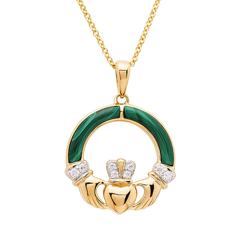 14KT Gold Vermeil Malachite Claddagh Pendant