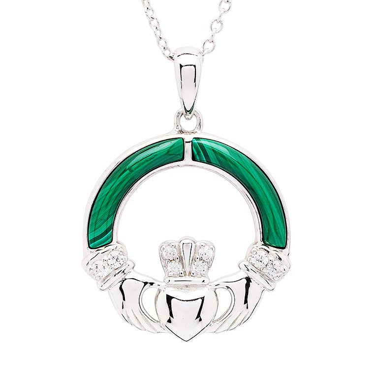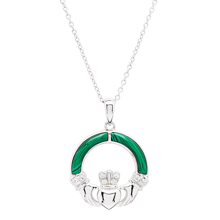 Sterling Silver Claddagh with Malachite Pendant