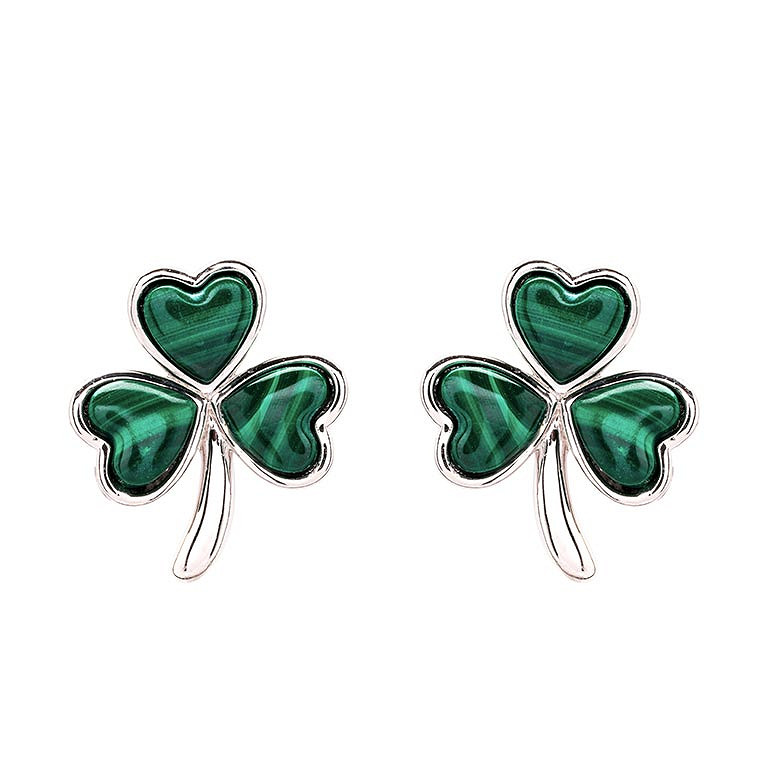 Sterling Silver Malachite Shamrock stud Earrings
