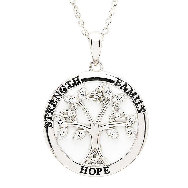 Platinum Plated Tree of Life White enamel Crystal Necklace