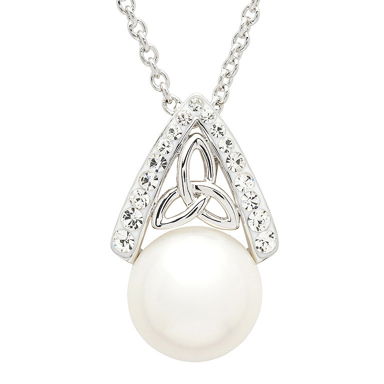 Platinum Plated Trinity Pearl/Crystal Necklace
