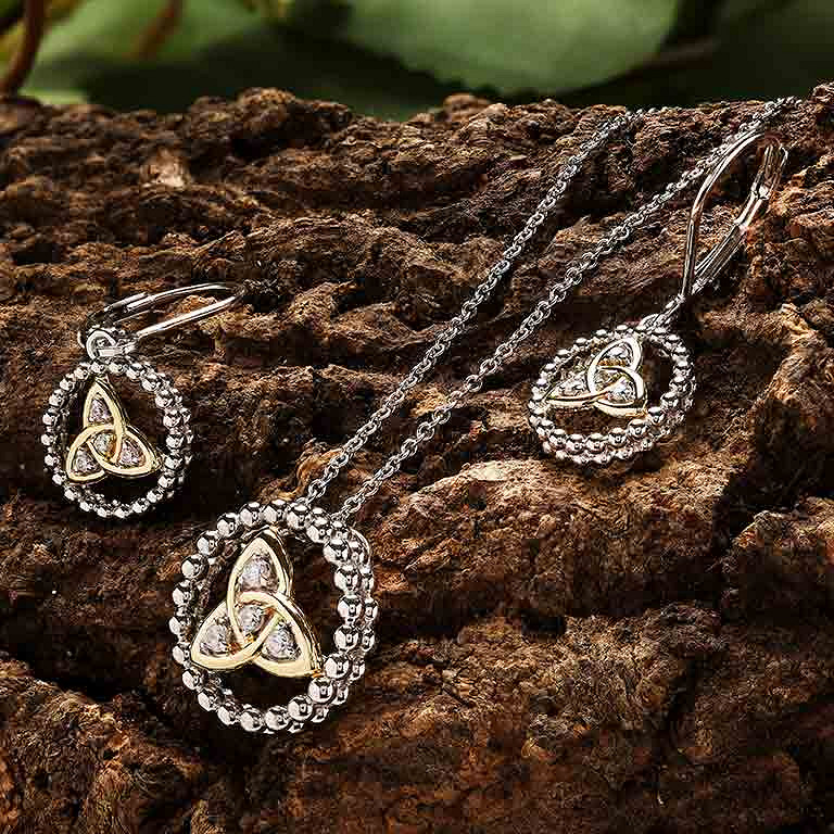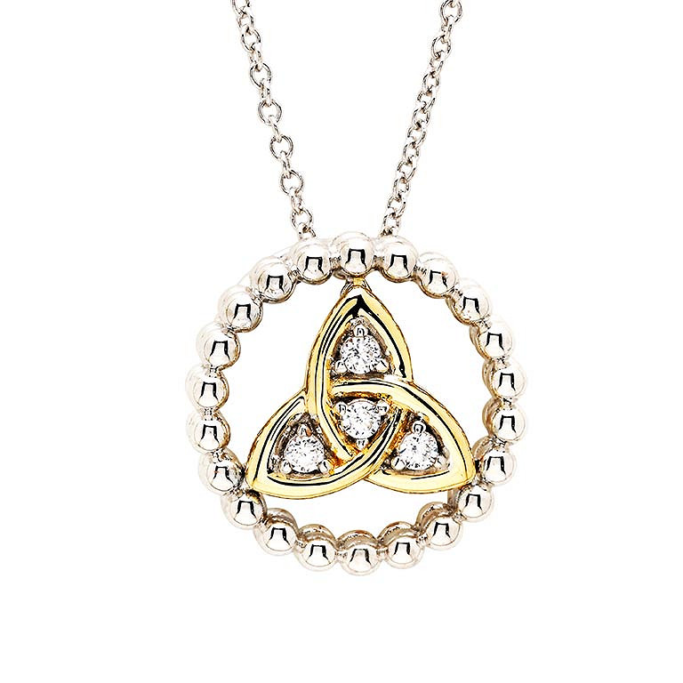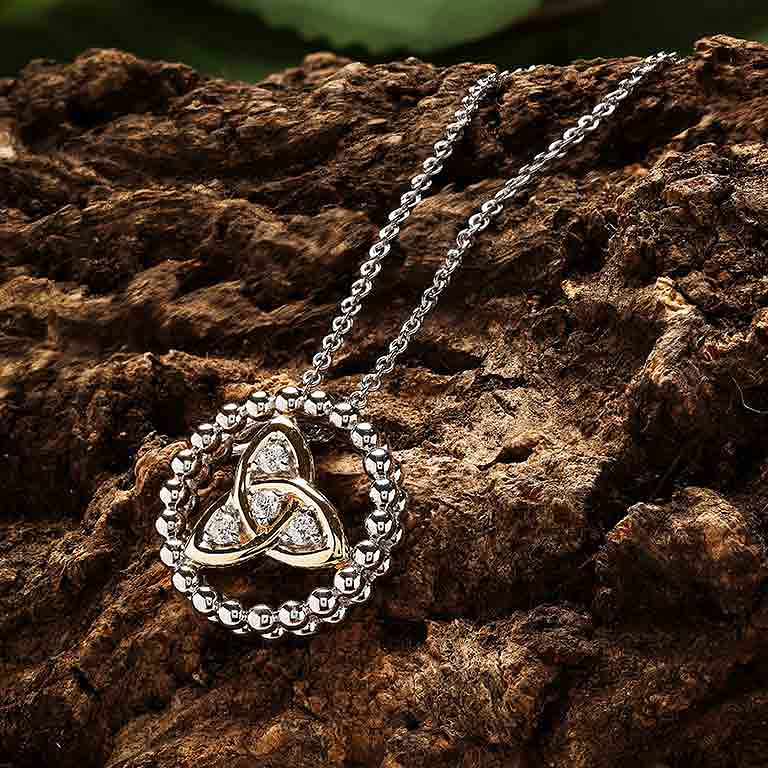 Sterlin Silver CZ Trinity Knot Necklace with 1m Gold Plate