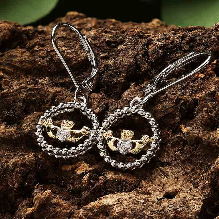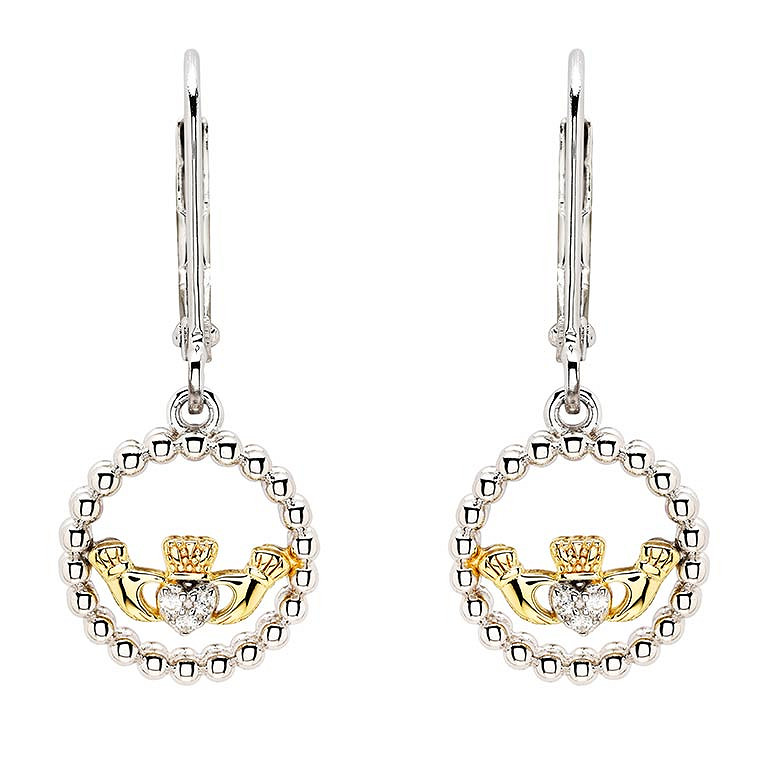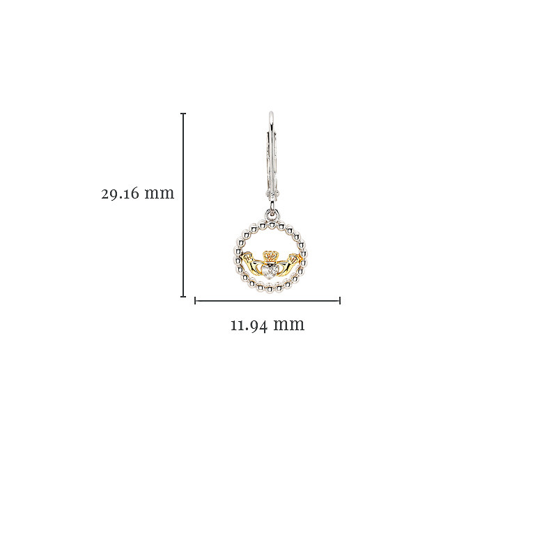 Sterling Silver Cz Claddagh Drop Earrings 1m