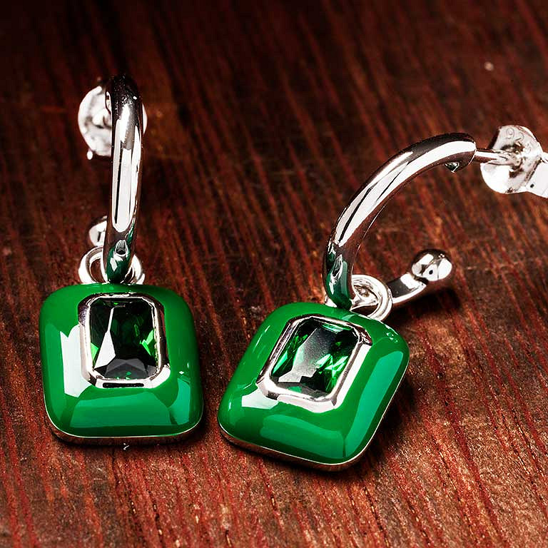 Sterling Silver Green CZ white Green Enamel Drop Earrings
