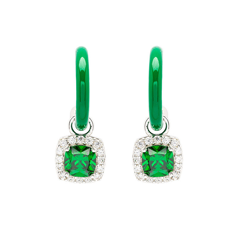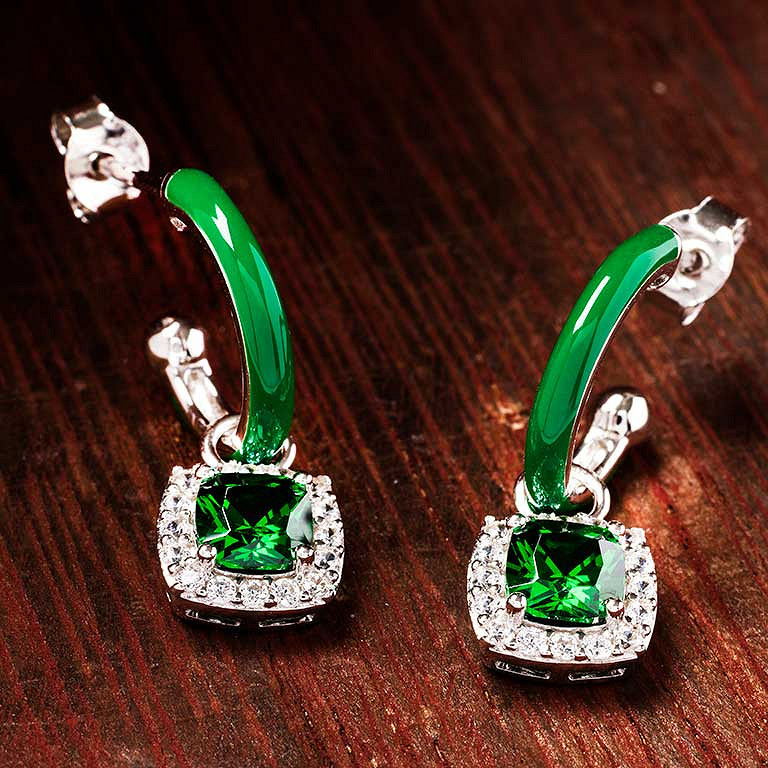 Sterling Silver Green CZ with Green Enamel Drop Earrings