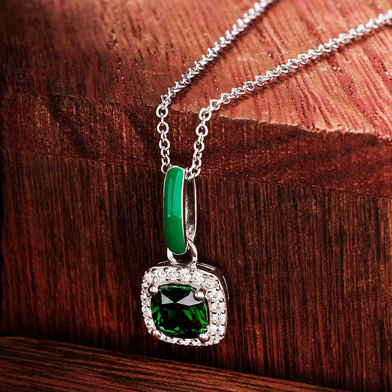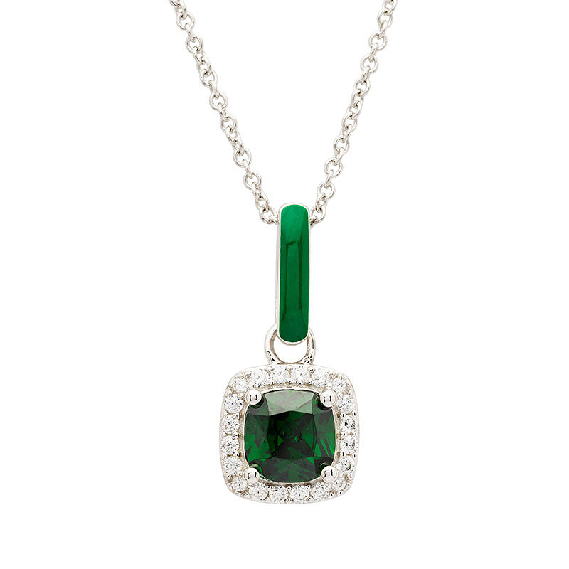 Sterling Silver Green CZ with Green Enamel Necklace