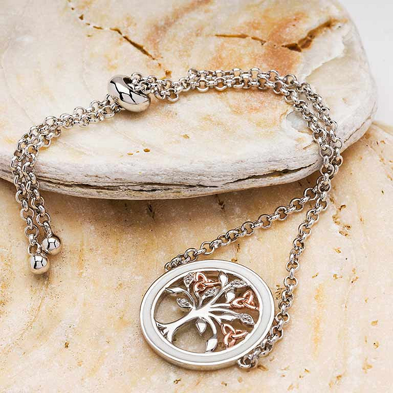 Sterling Silver white enamel Tree of Life Bracelet