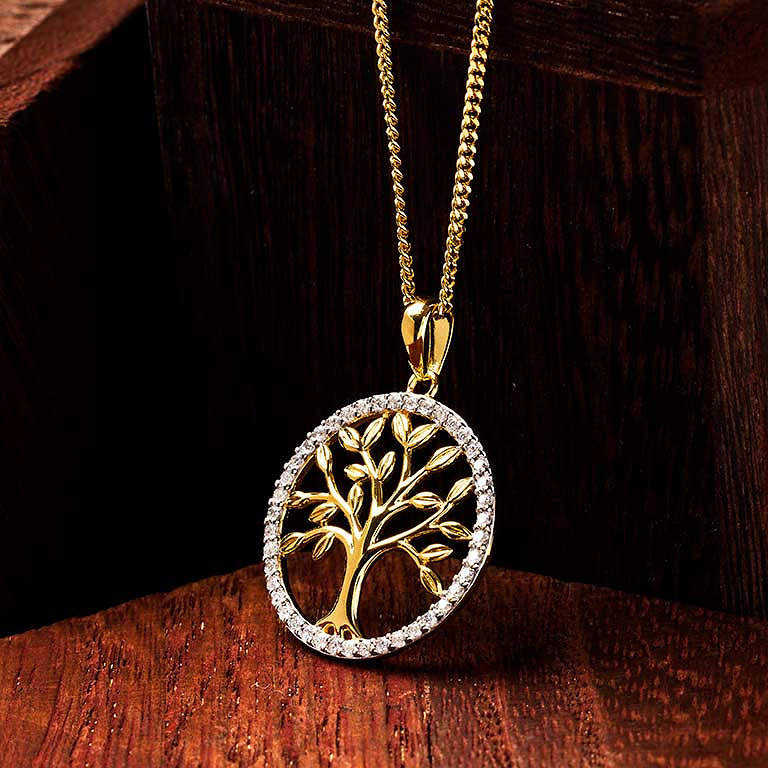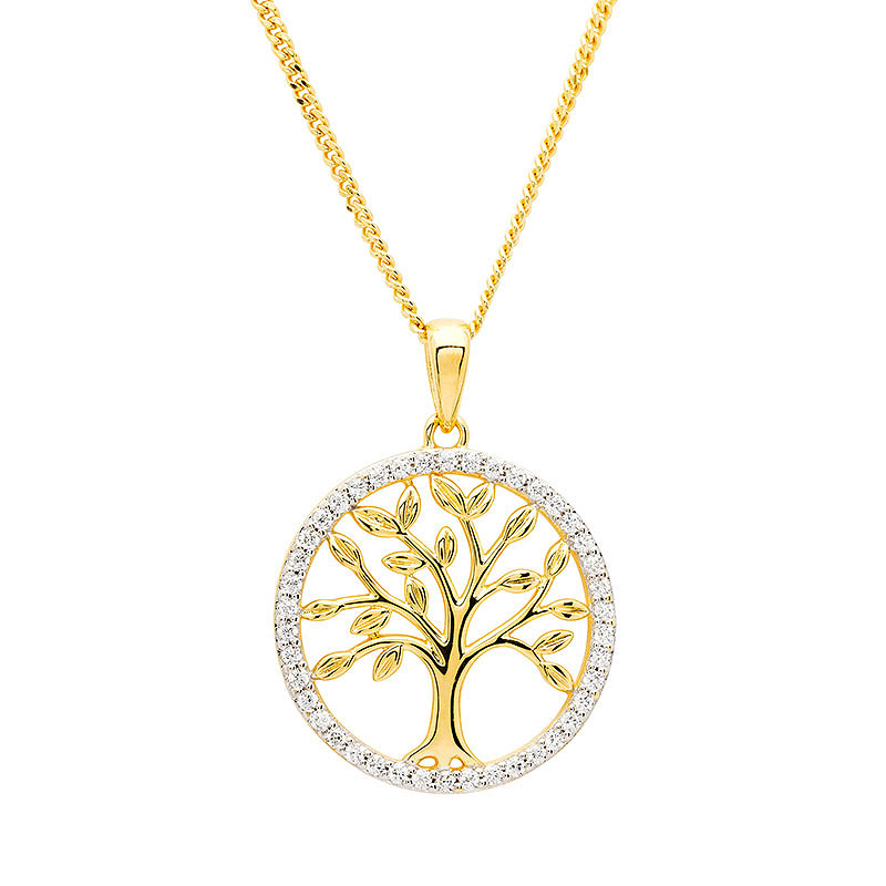 14kt Gold Vermeil Tree of Life CZ Necklace