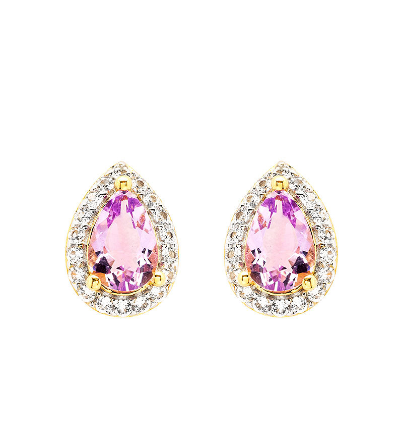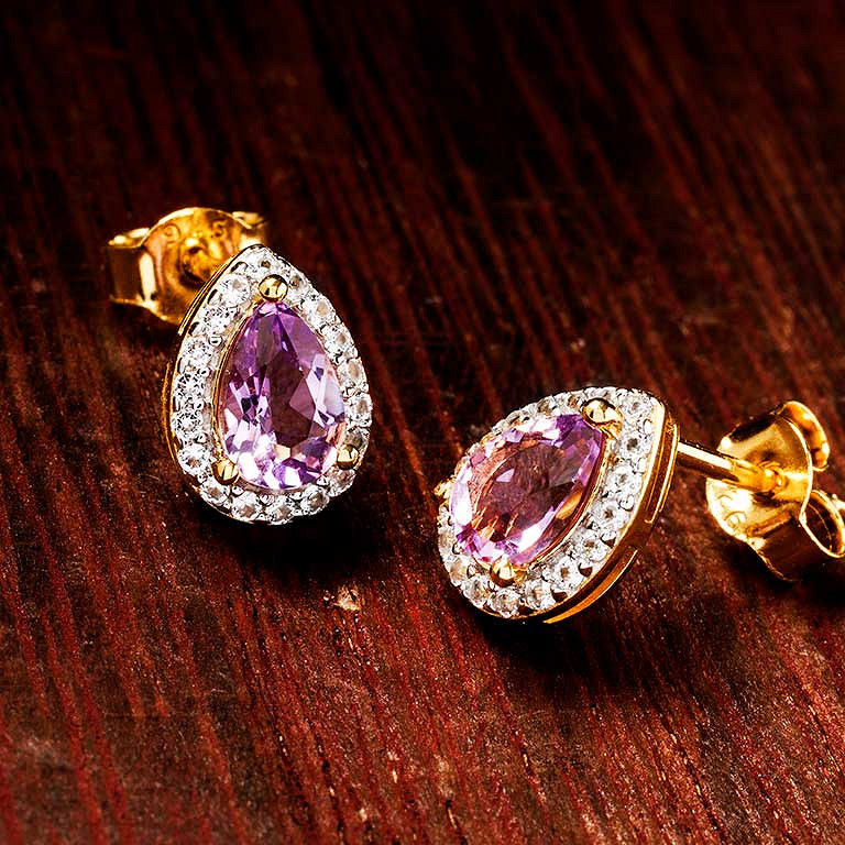 14kt Gold Vermeil Genuine Amythest Halo Earrings