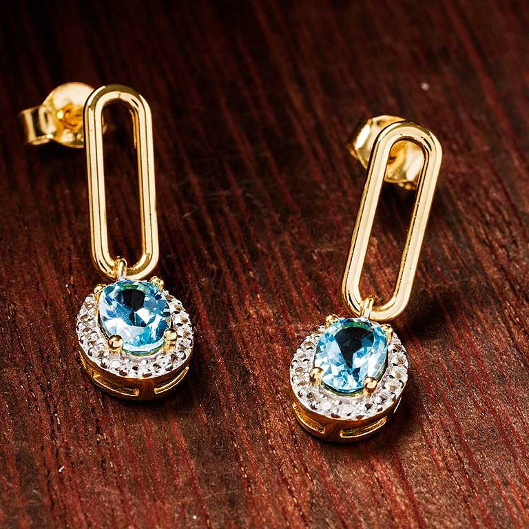 14kt Gold Vermeil Genuine Blue Topaz Halo Drop Earrings
