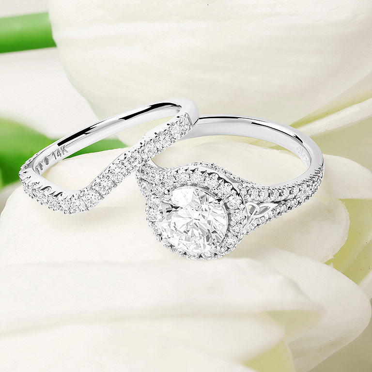 14k White Gold Celtic Ring with 2ct Lab Diamond