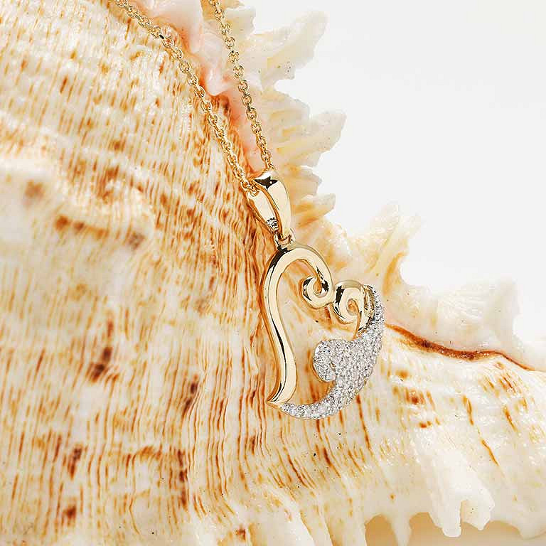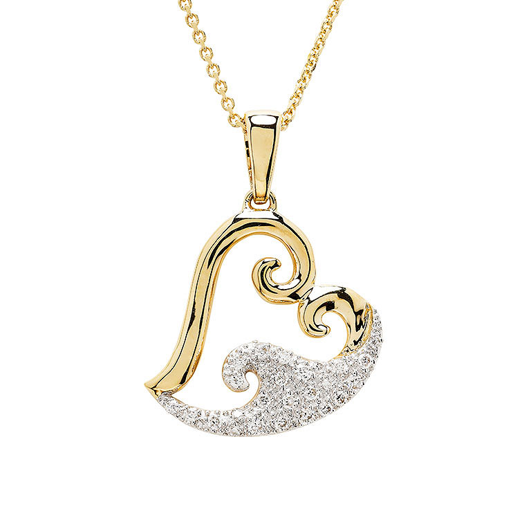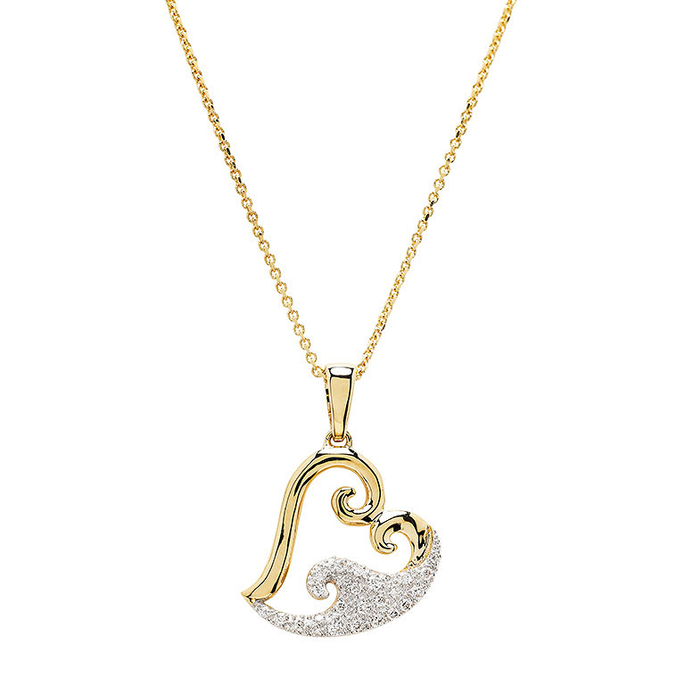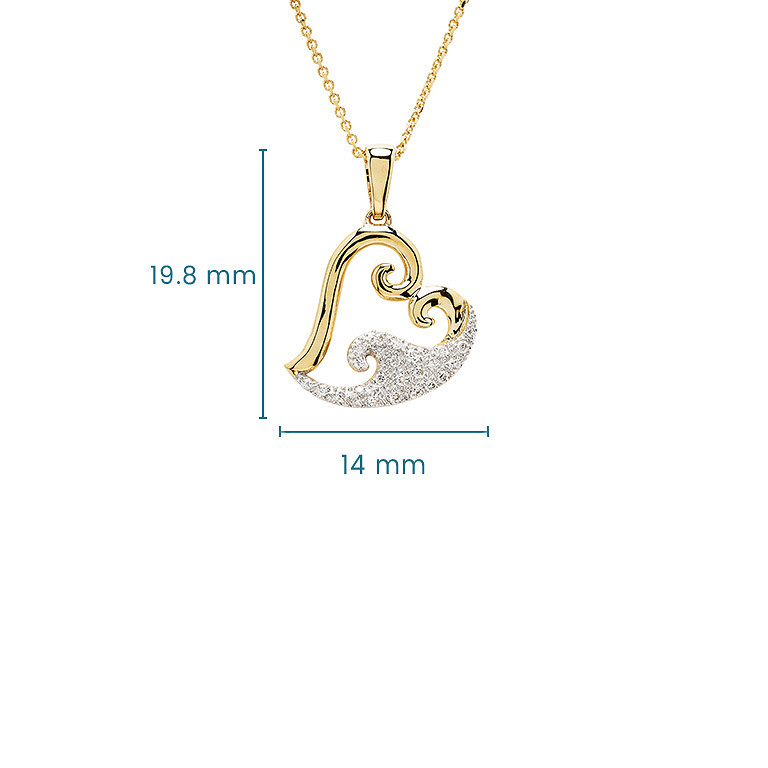 14kt Gold Lab Diamond set Heart Wave Necklace