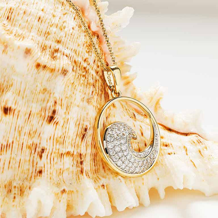 14kt Gold Lab Diamond Wave Necklace