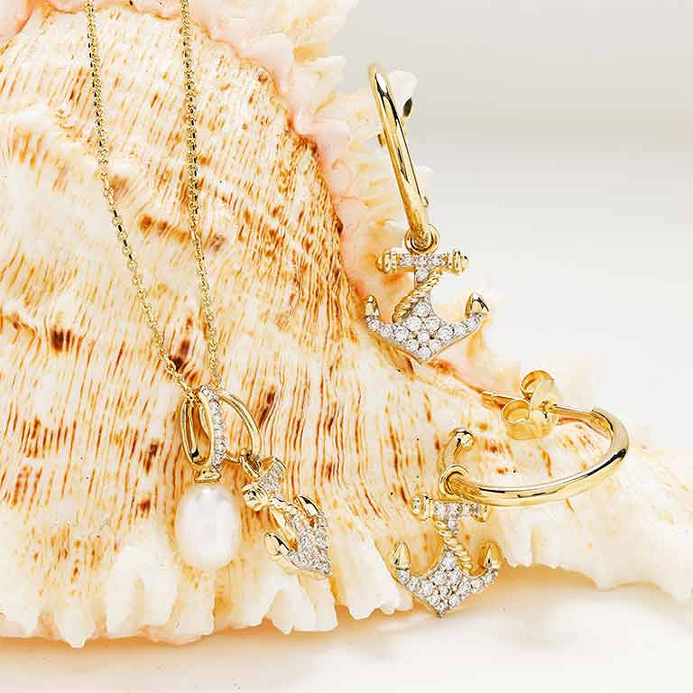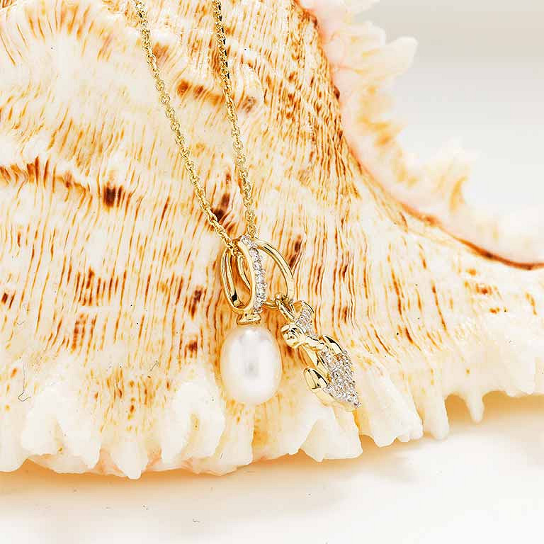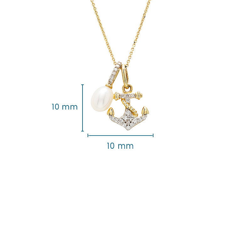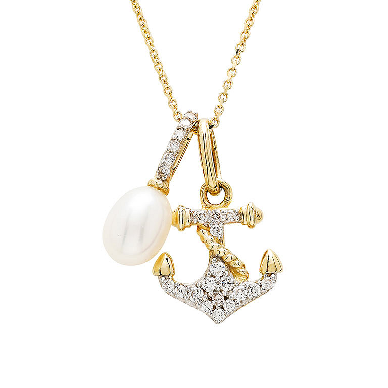 14kt Gold Lab Diamond/Freshwater Pearl Anchor Necklace