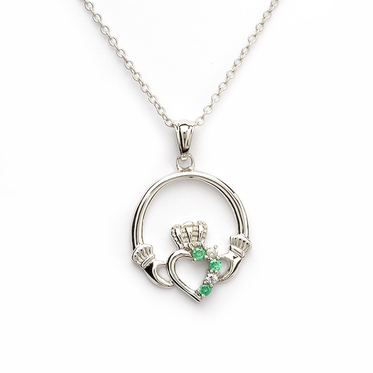 Silver green/cz claddagh pendant