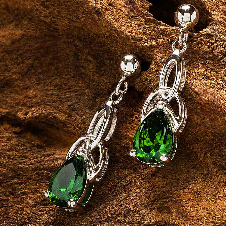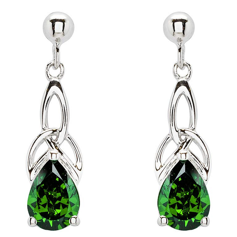 Sterling Silver Cz Emerald Trinity Earrings