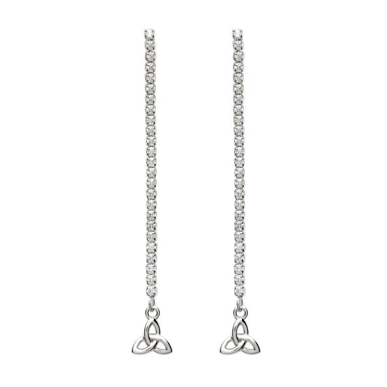 Sterling Silver CZ set Long Drop Trinity Earrings