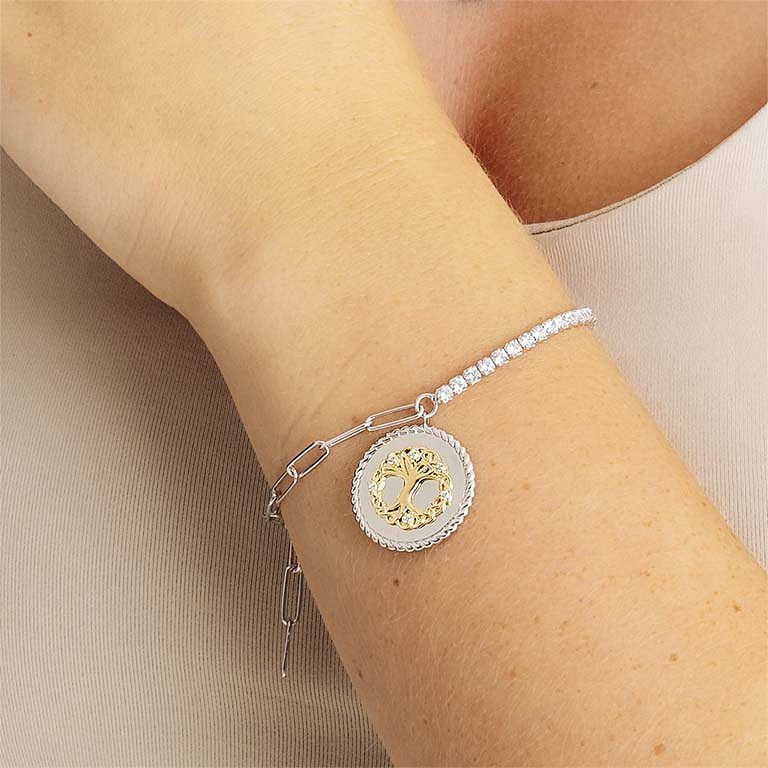 Sterling Silver CZ Tree of Life Bracelet